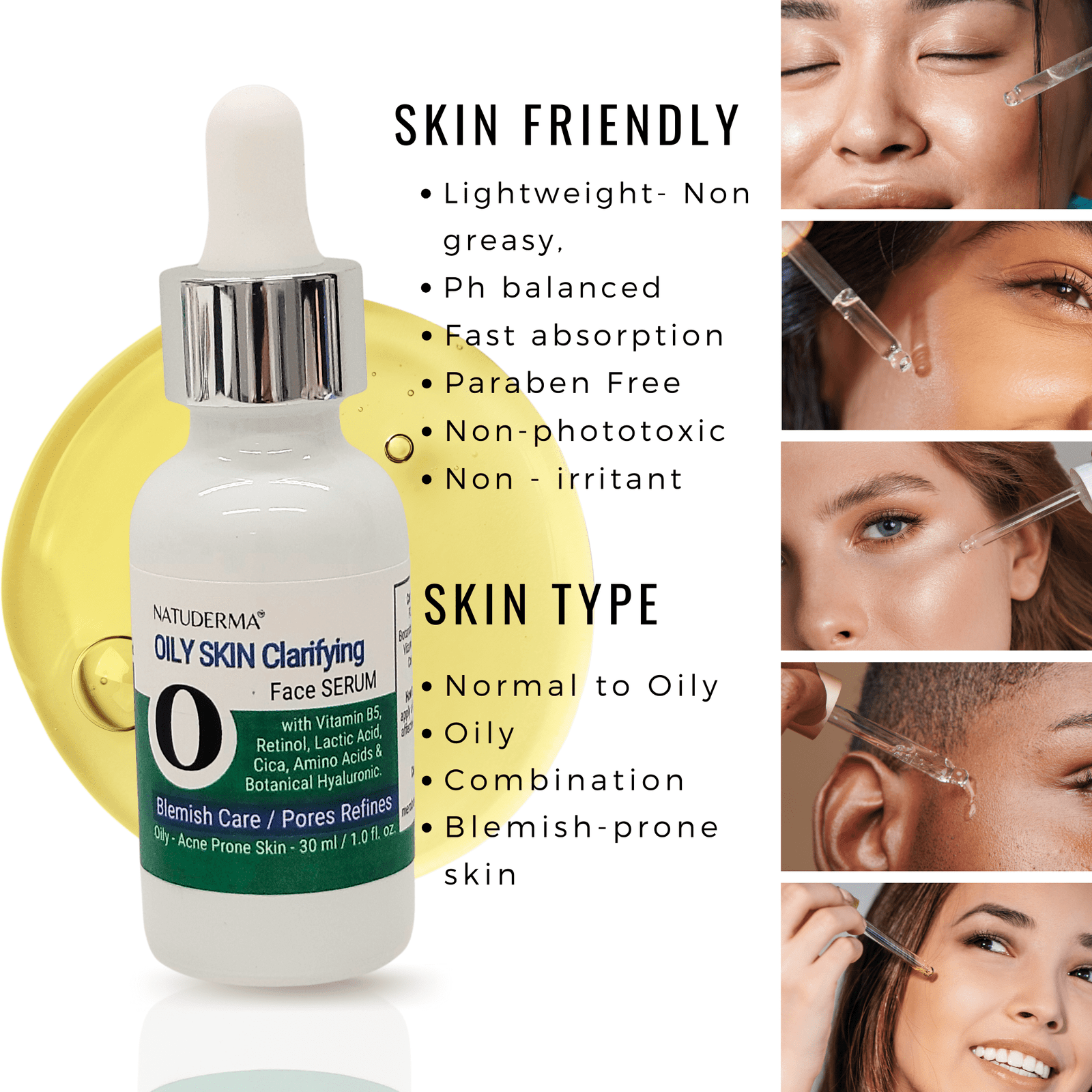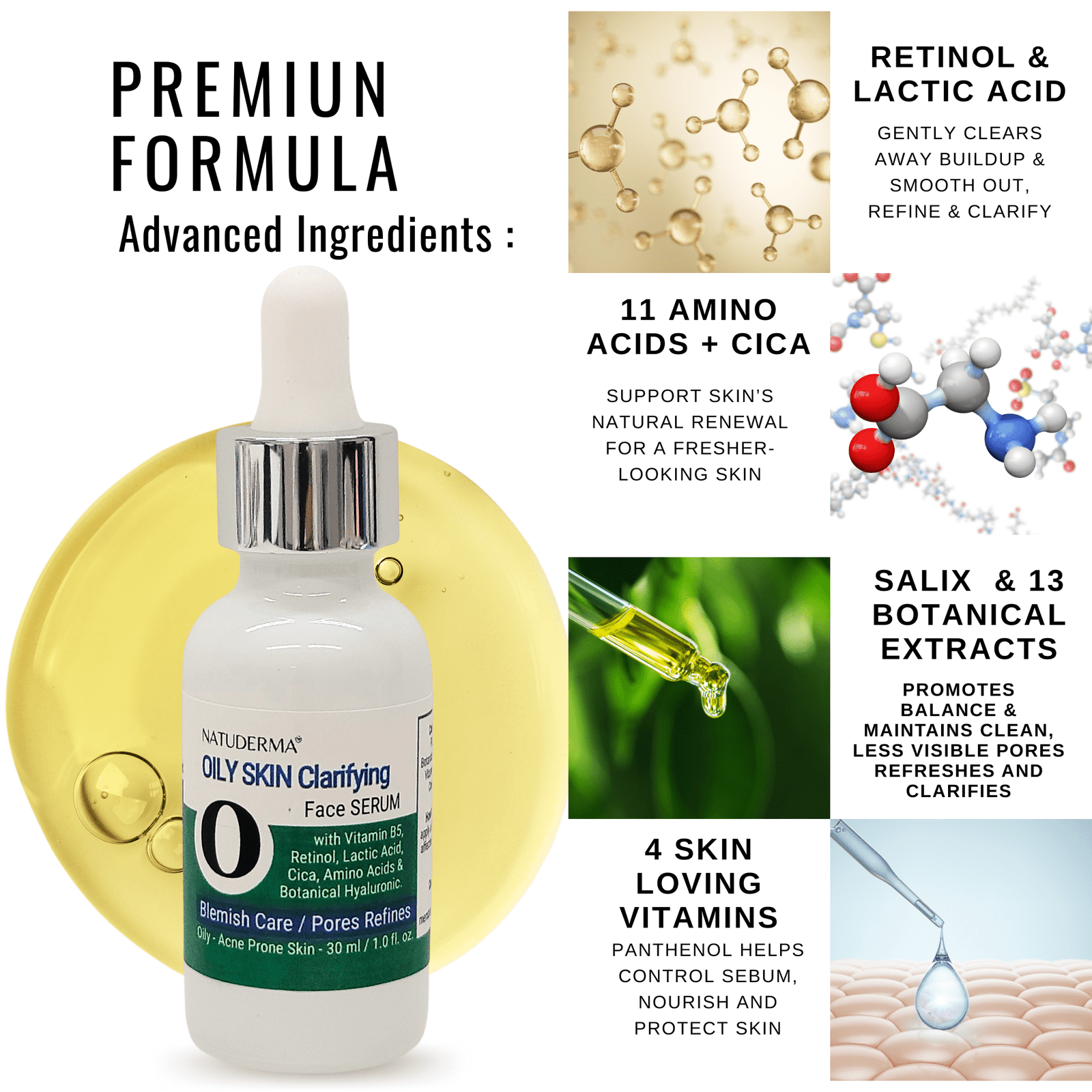 Retinol (Vitamin A): Primarily, this gold-standard ingredient refines oily texture and improves the look of troubled skin.